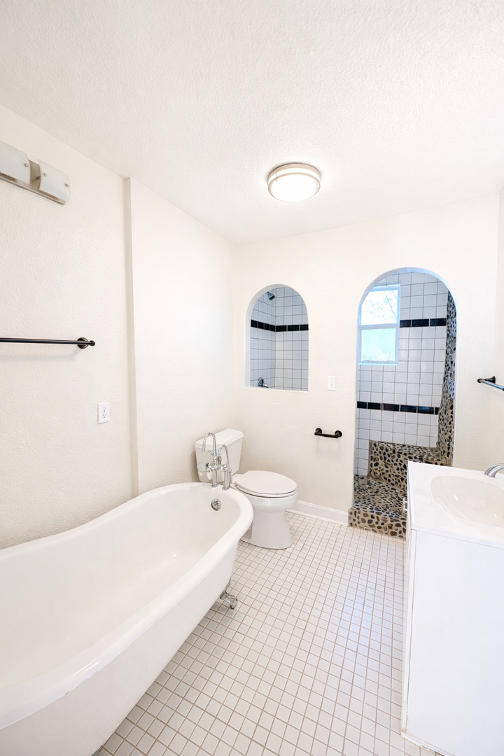 Discover this well-located Downtown Asheville rental featuring 2 bedrooms and 1 bath, plus a detached studio apartment ideal for guests, home office/gym or additional storage space. The main home offers central air, a gas stove, washer/dryer hookups, and a bathroom with a claw bathtub and a walk-in stone shower. Enjoy outdoor space with a covered front porch and a fenced-in backyard. Located in a fabulous spot for easy access to downtown Asheville, this property blends classic touches with practical amenities. ** Please note, the detached studio apartment cannot be subleased**